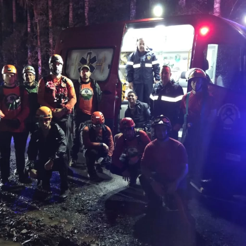 Na noite de ontem, nossas equipes foram mobilizadas para o resgate de um masculino que se perdeu em uma montanha local com cerca de 1.000 metros de altitude. A vítima foi encontrada próxima aos 900 metros, em condições desafiadoras como chuva intensa, escuridão, inclinação íngreme e densa vegetação, que dificultaram a progressão do resgate.